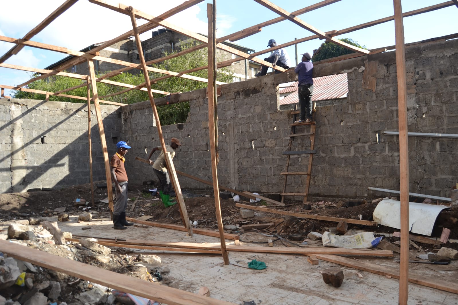 We have reached a critical turning point in the construction of the Wecy Center: the roofing is complete! With the trusses installed and the roofing sheets secured, the interior of the building is now protected from the elements. This allows us to begin internal works, including electrical wiring, plumbing, and flooring, regardless of the weather conditions. This brings us one step closer to opening our doors to the community.
