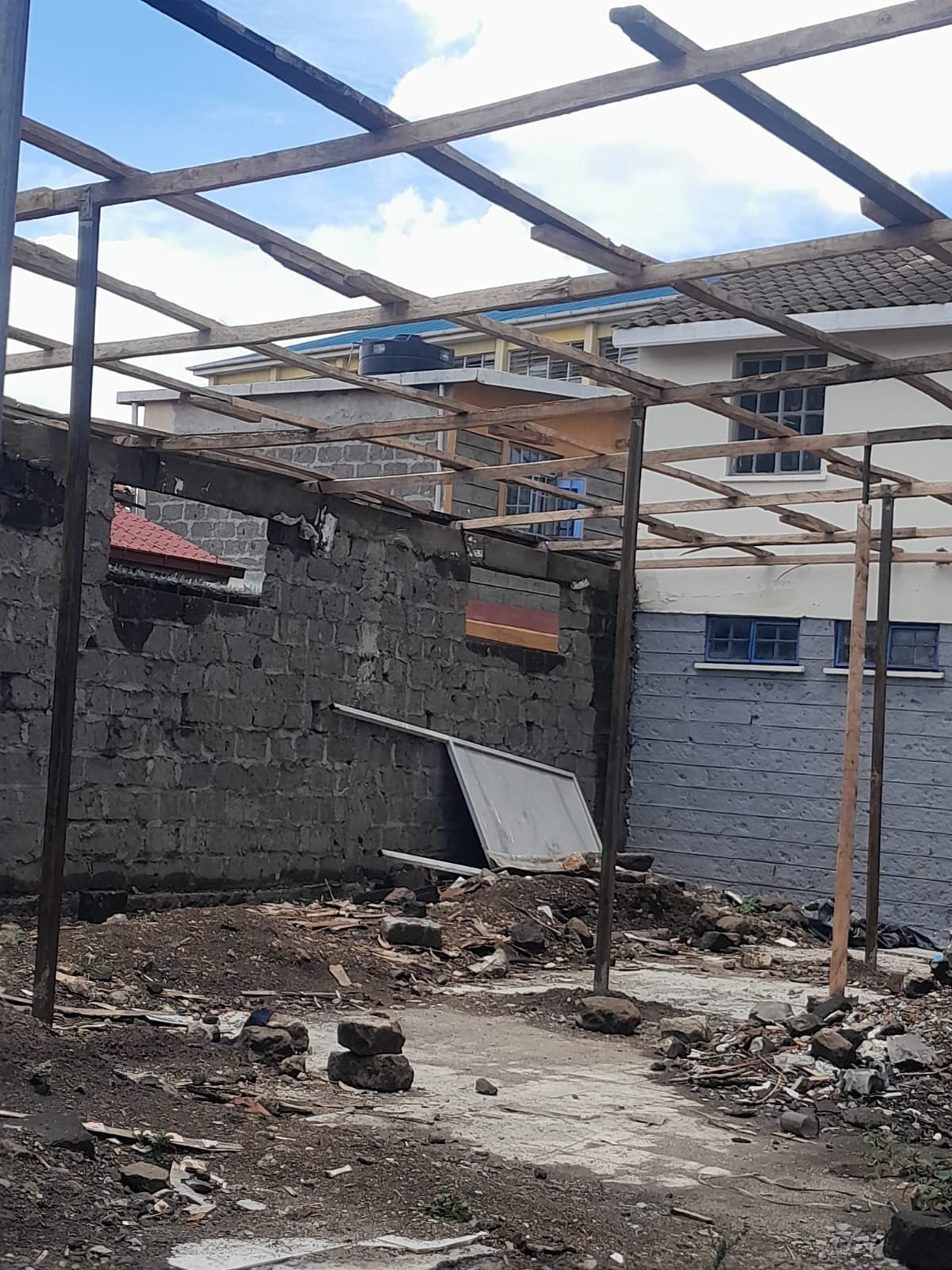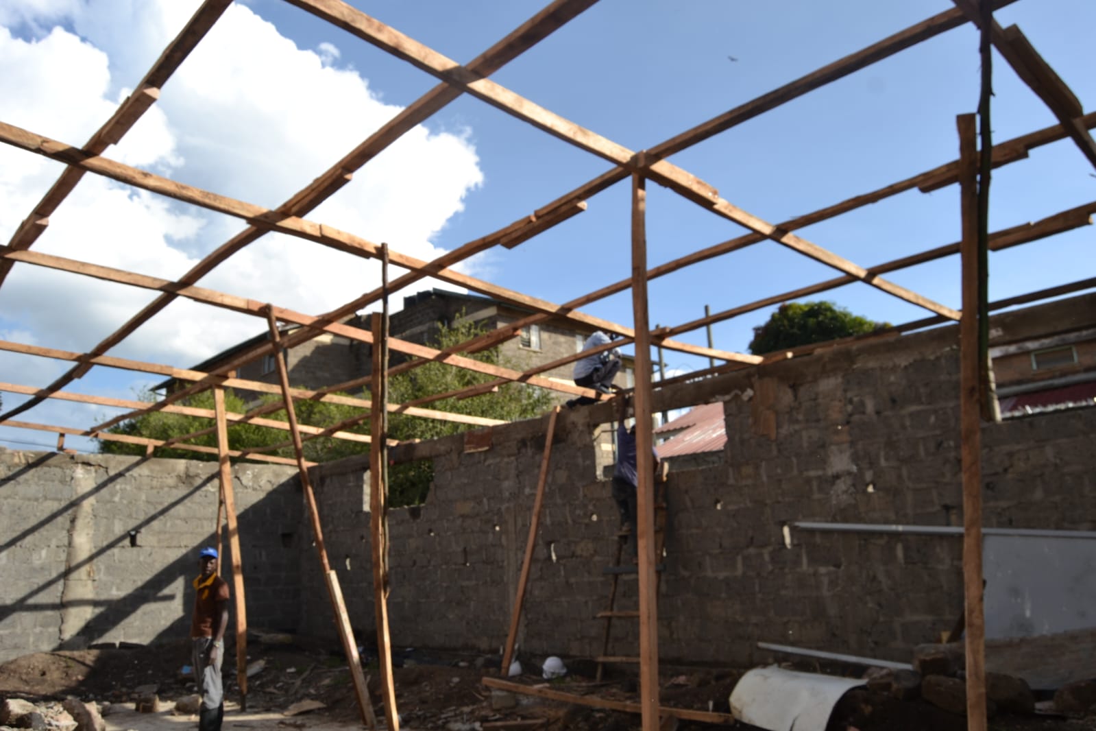 We have reached a critical turning point in the construction of the Wecy Center: the roofing is complete! With the trusses installed and the roofing sheets secured, the interior of the building is now protected from the elements. This allows us to begin internal works, including electrical wiring, plumbing, and flooring, regardless of the weather conditions. This brings us one step closer to opening our doors to the community.